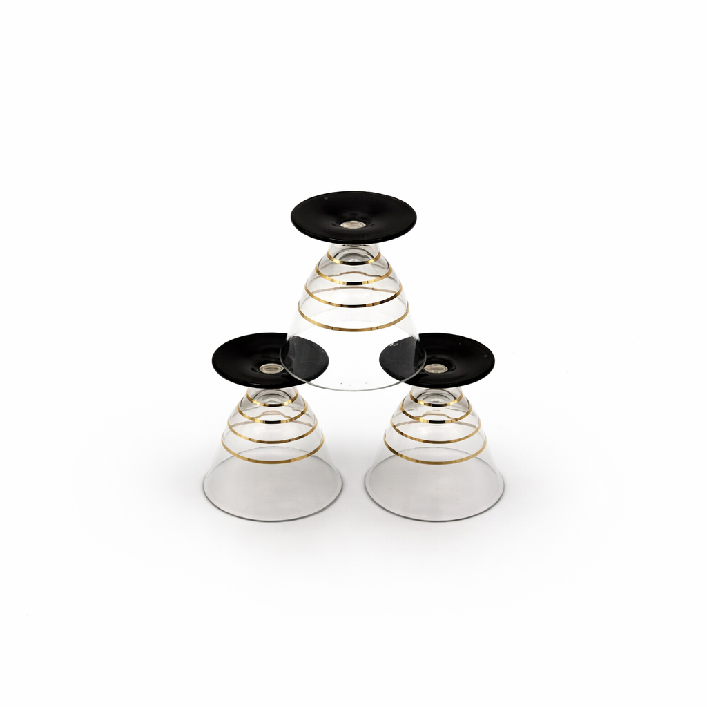 Glass with black stem and golden details